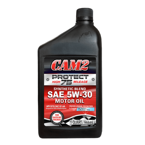 CAM2 Protect75 motor oils are licensed API SP and ILSAC GF-6A approved premium quality high mileage motor oils that contain specific additives targeted to counter the effects of high mileage on your engine. Protect75 Motor Oils are specially blended with premium low volatility base oils and special seal swell agents engineered to prevent leaks, reducing oil consumption and wear leading to increased fuel economy in new and high mileage engines. CAM2 Protect75 Motor Oils are recommended for use in passenger cars, light trucks, powerboats, motorcycles, and other stationary and mobile equipment. •Excellent Fuel Economy •Low Speed Pre-Ignition (LSPI) Protection •Piston Cleanliness For Turbocharged Engines